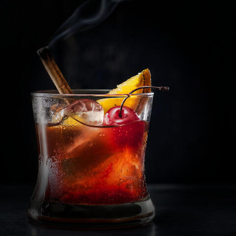 A variation on your traditional old fashioned, and much like its namesake a few surprising twists hidden inside. The base of this drink is a bright red sweet Shroud cherry that is popped in the center of the glass, followed by red grenadine for sweetness, bitters for a floral bouquet, and a few droplets of bright red Campari for a surprise bite in the middle. A large icecube crowns the base over which a solid rye whiskey is poured over to give it heft and that nice woody whiskey taste. To complete this drink, rim gently with fresh grated cinnamon, a slice of La Noscean orange, and a smoking cinnamon stick that gives it a fiery lingering finish.