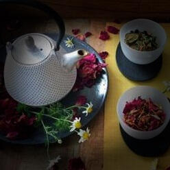 Pretty in Pink: Lip puckering Thanalan blend red tea, featuring subtle citrus notes, blends into a light, earthy white tea. Flavored with a hearty helping of raspberry to sweeten, and a hint of mint to bring the citrus forward.Quiet Day: A tea to be experienced. Calming, aromatic jasmine tea, chunks of peach, a dash of lavender, and whole slices of dried citrus combine to form a perfectly mellow drink. The aroma of peach overwhelms when warm, or try it iced for a more subtle taste.Northern Breeze: This heavy desert tea warms immediately and cools on the finish. Black tea provides an energizing buzz, assisted by the rich dark chocolate it’s so intimately blended with. Coconut and mint provide a refreshing finish.Witch’s Brew: A mysterious, dark red beverage, roiling out of a miniature cauldron. Perhaps not so mysterious, though. Cider spiced pomegranate chunks and dried cranberries feature prominently in this herbal tea blend. Cinnamon, allspice, a pinch of nutmeg provide a crisp counter to the tart fruits. Served with a cinnamon stick for stirring, too!Snowed In Cocoa: It starts with our rich, dark cocoa and a heap of creamy white chocolate chips. Stir in fine chunks of candy cane. Top with whipped cream, marshmallows, or both, then top that with a dusting of candy cane chunks. Finally, add in a candy cane rod to stir with. Well, that’s for us to do. All you need to do is cozy up next to the fireside and enjoy.