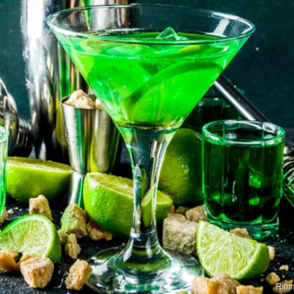 A mixed drink with many secrets. It tastes of vanilla, woven with tropical fruits and a harsh, seething bite. Rumor has it, the drink contains a rare venom, or perhaps ground succubus horn? Known to act as an aphrodisiac and increase the imbiber's sexual prowess. This one glows in the dark.